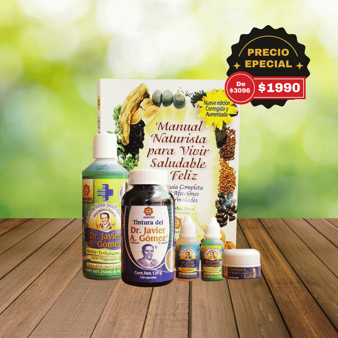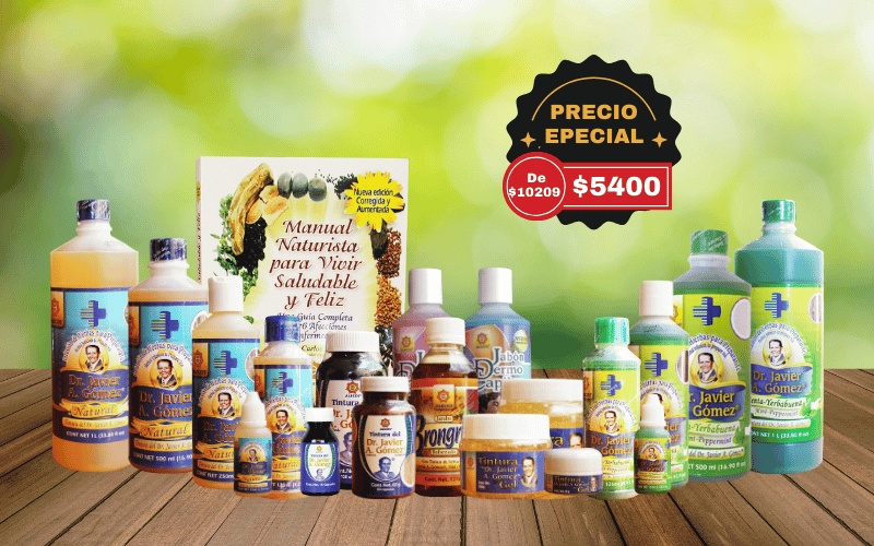 - Tintura del Dr. Javier A. Gómez Natural frasco 1 L + Tintura del Dr. Javier A. Gómez Natural frasco 500 ml + Tintura del Dr. Javier A. Gómez Natural frasco 250 ml + Tintura del Dr. Javier A. Gómez Natural frasco 125 ml + Tintura del Dr. Javier A. Gómez Natural gotero 35 ml