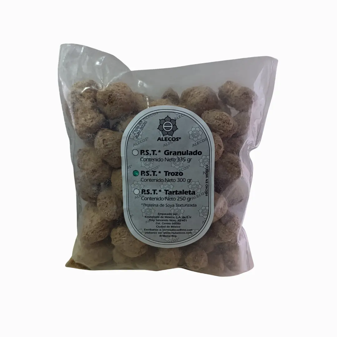 La Proteína de Soya Texturizada en Trozo destaca no solo por su contenido proteico, sino también por ser baja en grasas, libre de colesterol y una excelente fuente de fibra. Es una elección perfecta para quienes buscan mejorar su dieta con opciones nutritivas y saludables. Sus beneficios la convierten en un ingrediente básico en dietas equilibradas, sin comprometer el sabor o la satisfacción culinaria.